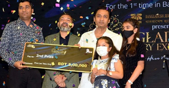 আলো ঝলমলে রাতে শেষ হলো বাংলাদেশে প্রথমবারের মতো আয়োজিত ‘বাংলাদেশ জুয়েলারি এক্সপো ২০২২’। বঙ্গবন্ধুর জন্মদিন উপলক্ষে রাজধানীর ইন্টারন্যাশনাল কনভেনশন সিটি বসুন্ধরার (আইসিসিবি) ১, ২ ও ৩ নম্বর হলে গত ১৭ মার্চ বসেছিল তিন দিনের এ প্রদর্শনী। গত শনিবার ছিল শেষ দিন। সমাপনী অনুষ্ঠানে উপস্থিত ছিলেন বাংলাদেশ জুয়েলারি এসোসিয়েশনের সভাপতি সায়েম সোবহান আনভীর। রাতে ২ নম্বর হলে শুরু হয় গø্যামারস ফ্যাশন শো। ঘণ্টাব্যাপী এ শোতে অংশ নেন দেশসেরা র?্যাম্প মডেলরা। এরপর ‘বেস্ট স্টল’ হিসেবে সেরা ৫টি স্টলকে পুরস্কৃত করা হয়। প্রথম হয়েছে আমিন জুয়েলার্স। পরে মেলায় উপস্থিত সাধারণ মানুষদের কুপন নিয়ে অনুষ্ঠিত হয় র্যাফেল ড্র। এতে তৃতীয় পুরস্কার পেয়েছেন ১০ ভাগ্যবান ব্যক্তি। তাদের প্রত্যেকে পেয়েছেন ১ লাখ টাকা পুরস্কার। দ্বিতীয় পুরস্কার পাওয়া ব্যক্তি পেয়েছেন ৫ লাখ টাকা। আর প্রথম পুরস্কার বিজয়ী আব্দুল কুদ্দুস জিতেছেন ১০ লাখ টাকা।